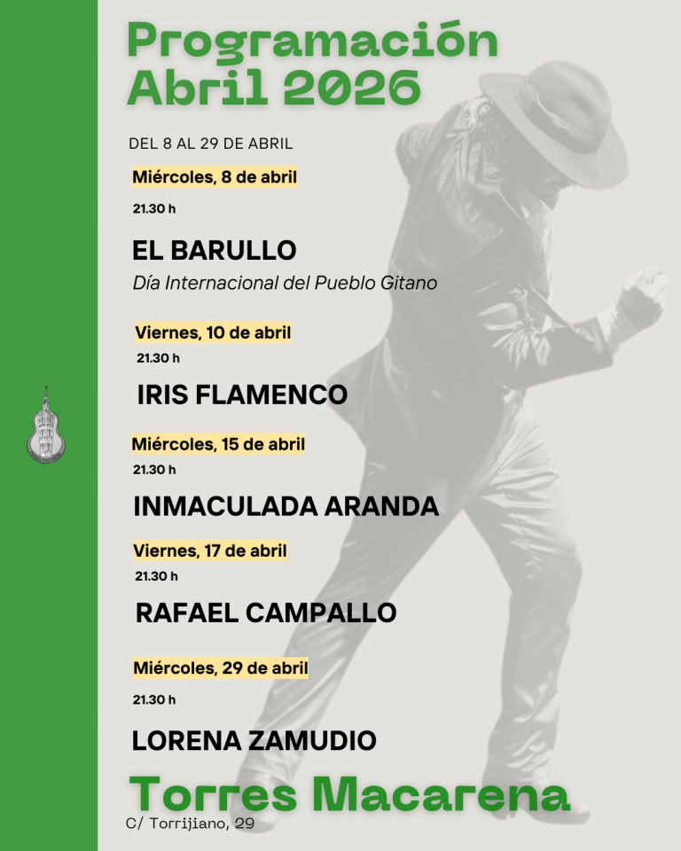 - La programación se anunciará con tiempo de antelación en esta web y las redes sociales de la peña (pflamencatorresmacarena).